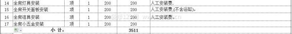 水電工程是整個房屋裝修中非常重要的一個部分,對水電工程的裝修材料和施工工藝都是需要業主仔細、嚴格的對待。這份2017裝修半包報價單中可以看到對每一個水管、電線盒強弱電改造都分得比較細,這樣的方式是為了方便業主能夠清楚、明了的看到水電工程中詳細的報價項目。而這里的其他項目則包括了全房的防潮和燈具、開關面板安裝,以及對房間中需要的潔具和小五金等材料的采購及安裝。