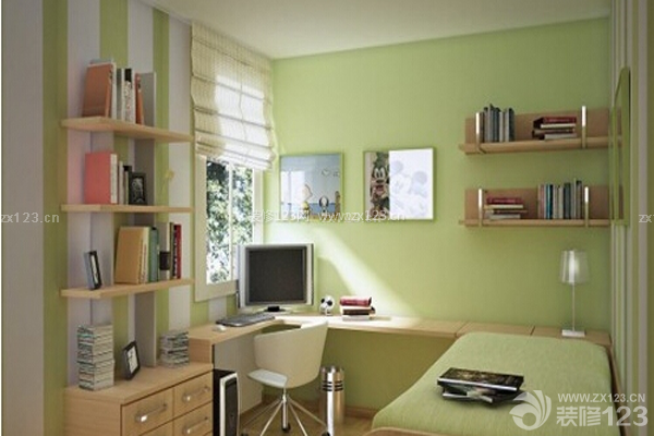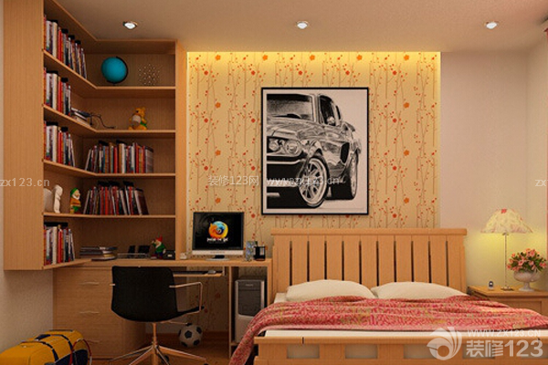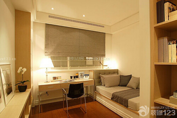 如果家里沒有單獨(dú)的書房,將書房設(shè)計(jì)在臥室內(nèi),我認(rèn)為是最適合不過了,雖說臥室是休息的地方,但是在工作的時(shí)候,沒有什么地方能比臥室更安靜了,更舒適的了。這間臥室采用暖色調(diào),墻紙顏色和床、書桌、書柜的顏色相互輝映,合理的利用了臥室的空間,使不大的臥室看起來十分溫暖、舒心,為讀書辦公營(yíng)造了一個(gè)良好的環(huán)境。