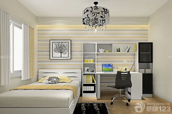 臥室加書桌形式的設(shè)計(jì)是很常見的,如果空間允許的話,相信大多數(shù)的人都會(huì)這么設(shè)計(jì),小小的書桌和書柜也能滿足自己閱讀的需求。這間臥室,設(shè)計(jì)十分簡(jiǎn)單,以簡(jiǎn)單的白色為基色,讓書房臥室顯得干凈整潔,毫無繁重、擁擠之感。