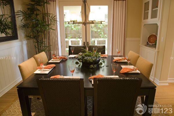 如果在餐廳的餐邊柜里設(shè)置了餐具和酒水存放的空間,用餐時隨手可得,既方便又美觀。如果餐椅套和餐具都選擇白色,會顯得更潔凈、素雅。餐桌上的植物、蠟燭等也是營造用餐氛圍不錯的裝飾物!