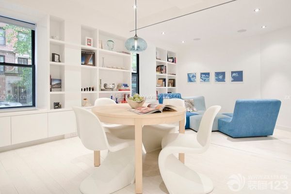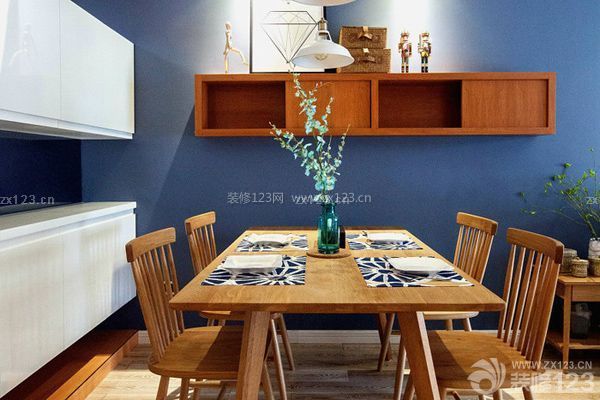 看到這樣的餐廳設計,不知道大家是不是和小編一樣被深深的吸引了呢,非常有個性的藍色調(diào)設計讓這個餐廳散發(fā)出一種沉靜的美感。光滑的木質(zhì)桌面處理讓原木材質(zhì)具備了現(xiàn)代之美,澄凈的藍色系背景墻與餐桌的椅面相呼應,給小戶型層次之美。