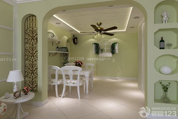 很多小戶型住房都采用客廳或門廳兼做餐廳的形式,在這種格局下,餐區(qū)的位置以鄰接廚房并靠近客廳最為適當(dāng),它可以縮短膳食供應(yīng)和就座進(jìn)餐的走動(dòng)線路,同時(shí)也可避免菜湯、食物弄臟地板。餐廳與客廳之間可采用靈活處理,如用壁式家具做閉合式分隔,用屏風(fēng)、花槅做半開放式的分隔。但需要注意與客廳在格調(diào)上保持協(xié)調(diào)統(tǒng)一,并且不妨礙通行。