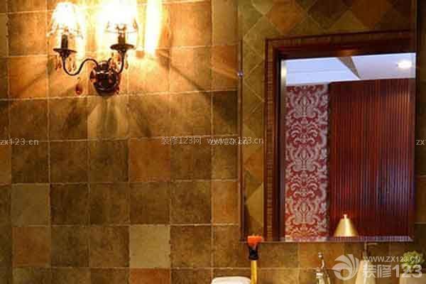 裝修tips:復古色調的彩色瓷磚與大理石地面拼貼出這一具有復古感覺的衛浴空間,特別是墻面上的壁燈為這個衛生間添加了不少復古氛圍,簡約的整理臺也顯出一種異域氣質。