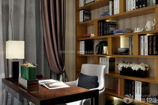 隨著閱讀量的提升,小巧的書桌、書柜已經(jīng)不能滿足龐大書籍的擱置,利用靠墻的空間,安置書架,書籍整齊有致,可以讓人充分的體驗(yàn)到讀書的樂趣。從屋頂延伸到地板的書架達(dá)到了空間利用極致的效果,收納功能更是強(qiáng)大。整面墻的書柜雖然可以收集很多東西,但是有著致命的弱點(diǎn),如果你的書柜沒有任何裝飾格子的話,那整面墻看起來會(huì)很呆板。在書架的選擇上可以選擇樣式新穎而創(chuàng)意的造型,添加一張?zhí)梢危屓吮陡惺孢m。書房很大,就在一角開辟出一整面墻的書架吧。棕黑色書架更顯沉穩(wěn)大氣,同時(shí)也具備很強(qiáng)的收納能力。書架的頂部展示著主人個(gè)性而獨(dú)特的裝飾品,有效緩和了嚴(yán)肅的氣氛,書架旁的綠植,更是形成一道美麗的風(fēng)景線。