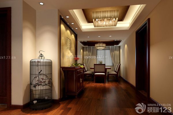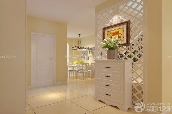 進門處設置“玄關對景”,最大的作用就是遮擋人們的視線。這種遮蔽并不是完全的遮擋,而要有一定的通透性。因此墻壁間隔之間應下實上虛,面對大門的玄關下半部應以良好的磚墻或木板來進行裝修,上半部裝修則可以選用明亮的裝飾材料如磨砂玻璃。墻壁宜光滑,墻壁的顏色要與天花板色調協調一致。