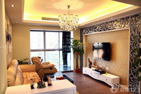 因?yàn)橐曈X的關(guān)系,墻面理所當(dāng)然地成為重點(diǎn)。但四面墻也不能平均用力,應(yīng)確立一面主題墻。主題墻是指客廳中最引人注目的一面墻,一般是放置電視、音響的那面墻。在主題墻上,可以運(yùn)用各種裝飾材料做一些造型,以突出整個(gè)客廳的裝飾風(fēng)格。主題墻是客廳裝修的“點(diǎn)睛之筆”,有了這個(gè)重點(diǎn),其他三面墻就可以簡單一些,假如都做成主題墻,就會(huì)給人雜亂無章的感覺。