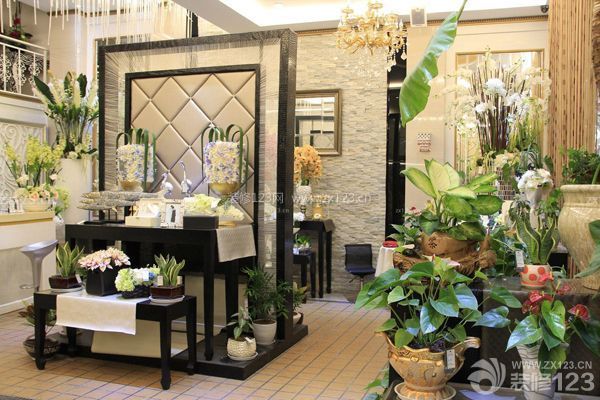 歐式風格的花店裝修效果圖強調以華麗的裝飾、濃烈的色彩、精美的造型達到雍容華貴的裝飾效果。但是給人感覺卻不復雜,雍容華貴且淡雅大方。