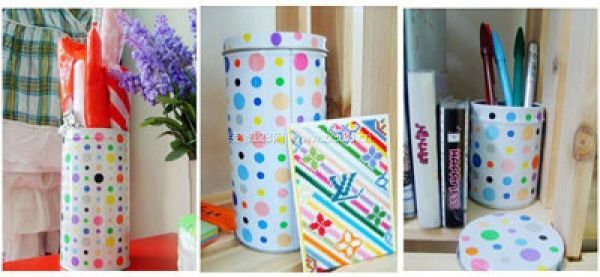 圓點鐵盒很漂亮吧~~也是宜家的哦,大的我用來放塑料袋了,中間的那個隨便放點雜物,那個十字繡的卡套是我親手做滴~~~很難得吧?呵呵,小的就當(dāng)成是筆筒了~!