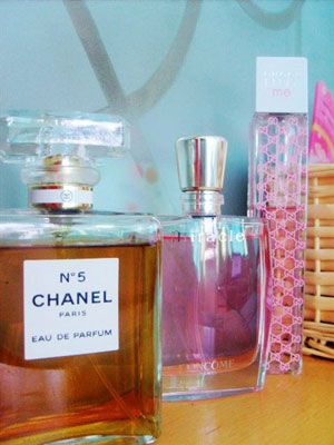 香水呢,不過都不是我自己買滴~~家人送的~嘿嘿!偶不喜歡香奈兒的味道,覺得太貴婦了,平日里就拿它噴衣柜,很耐噴。同學(xué)見到了就說我敗家,主要是money不是偶淘的,心理上沒什么負擔(dān),呵呵~~~蘭蔻的味道很少女,還是相當(dāng)不錯的。最喜歡的自然還是Gucci的拉~~~用的最多,呵呵