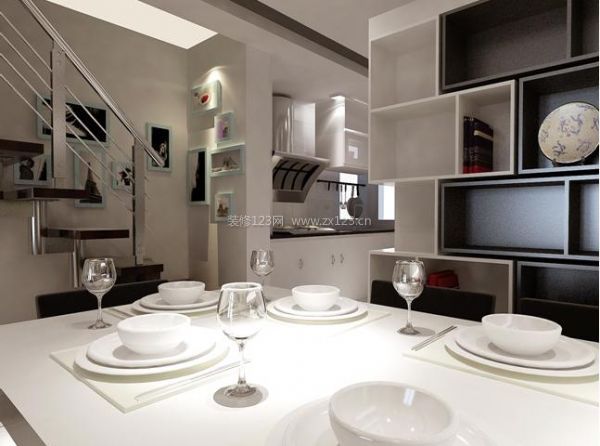 開放式的廚房,與餐廳相通。大面積的白色,通過不同的造型拉開了層次。不至于有沉悶、暗澀的感覺。設計簡潔又不失本身的個性。