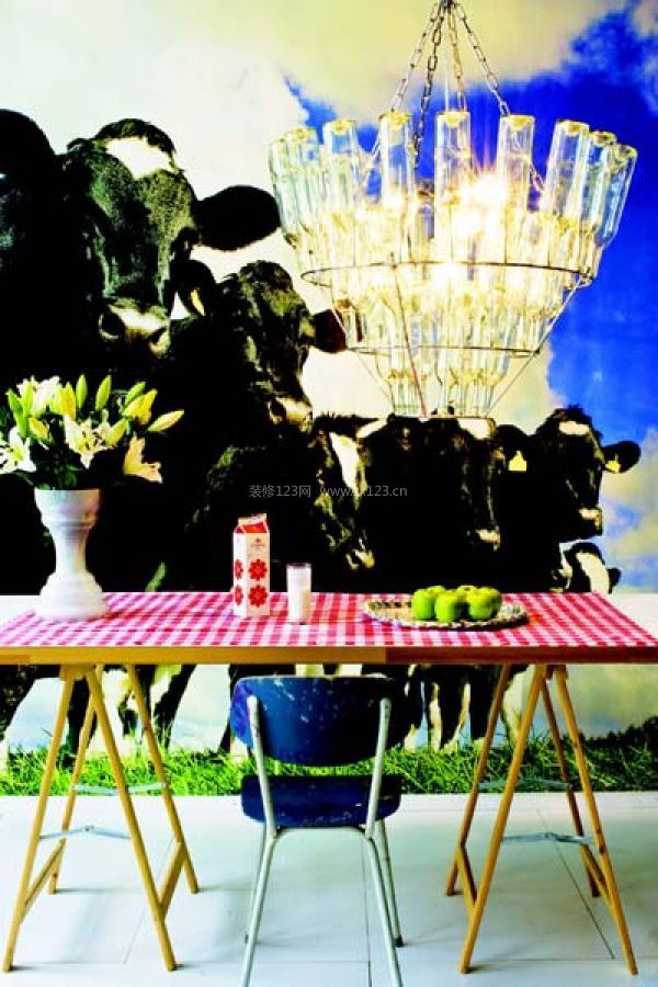 一般說來,用餐的燈光以餐桌為重心,多是吊燈為主,再在其他的點搭配一些輔助性的燈光。單頭吊燈看起來簡單明了,因此在造型上下功夫是凸顯其品位的好方法,設計感頗強的落地燈、抽象風格吊燈、折紙造型吊燈都是時尚餐廳的最佳搭配。