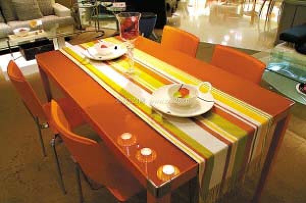 鮮艷的色彩也是今年餐桌的流行元素。貼近大自然的蘋果綠,熱情奔放的橘紅,飽滿的色彩成為空間的一大亮點,顯得活潑而不單薄。而且因為玻璃材質(zhì)的晶瑩感覺,即使用紅色這些暖色調(diào)也不致讓人感覺煩躁。