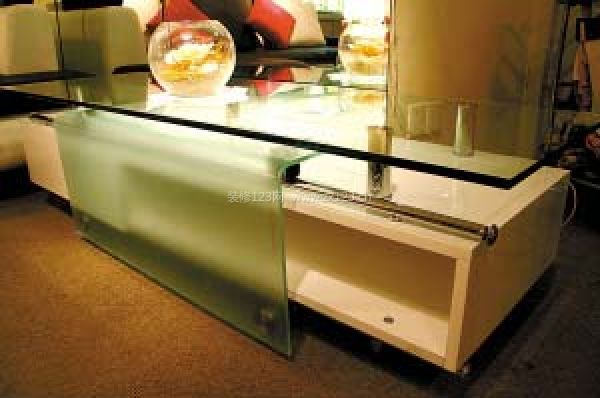 玻璃茶幾也在功能上花了很多心思,比如傳統(tǒng)的雙層茶幾,今年它的上層做成了可以移動的。茶幾上層玻璃可以往左右分別平移90度,方便打開取出下層的東西,同時也不會碰翻桌上的物品。