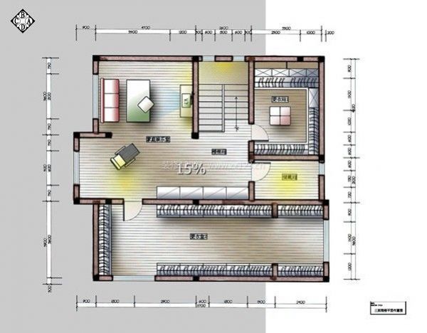 2樓平面圖二樓將原臥室和小起居合拼為一個通間,使陽光更流暢到每個角落。