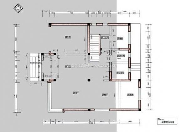 一樓平面圖一樓將原有的車庫加高改為客廳,把原來的入戶門向外推,確保了空間的完整性和寬敞性,將原來面積不大的櫥衛空間均面積最大合理化。一層公共空間沒有做刻意的三維區域分割,只是在地面上按不同使用功能作了不同的拼花處理,顏色采用我個人認為較個性、高雅的灰度咖啡調。