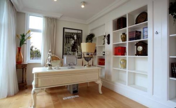 傳統意蘊的書房給人一種古色古香,寧靜豁達的深淵意境。設計師采用天然花紋的大理石充滿貴氣又不失溫馨,間或穿插的馬賽克圖案又增添了靈動之感,沒有做過多的裝飾,僅僅放置了簡練的歐式桌椅書架、時時隱射出主人的書生一起、為培育下一代學習的理念設計了良好的學習空間。