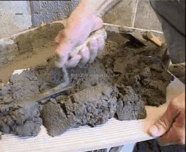 第五步:因為水泥總要下滑,貼好后,還要用砂漿再次填滿。