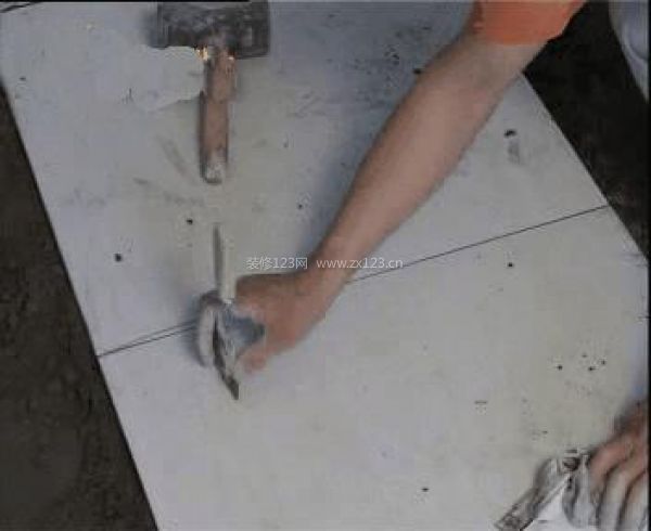 第九步:用刮刀從磚縫中間劃一道,保證磚與磚之間要有一定的、均勻的縫隙,防止熱脹冷縮對(duì)磚造成損壞,用刮刀在兩塊磚上縱向來(lái)回劃拉,檢查兩塊磚是否平齊。