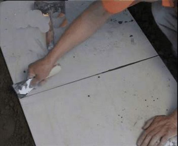 第四步:敲打結(jié)實(shí)后,拿起瓷磚,看砂漿是否有欠漿或不平整的地方,撒上砂漿補(bǔ)充填實(shí)。