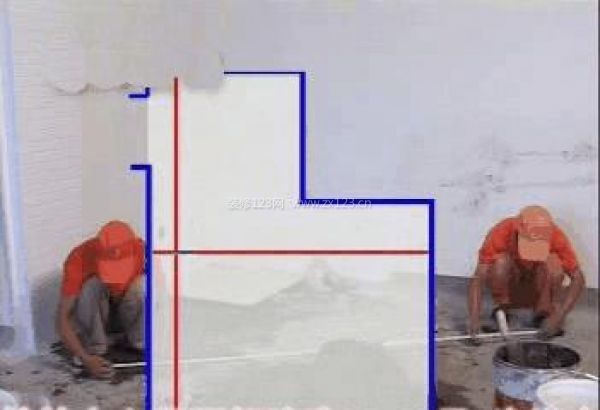 原則四:要檢查基準線是否標準,沿交叉點量出1.6米點和1.2米點,量兩點之間的距離如果是2.0米的話,就證明基準線是垂直的、是標準的,就可以開始設磚。