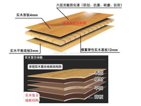 復(fù)合地板分強(qiáng)化復(fù)合和實(shí)木復(fù)合。