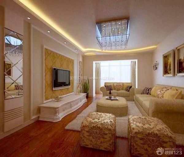 簡歐風格裝修,暖色調,獨特的吊頂造型,室內家具擺放得體,看起來很溫馨