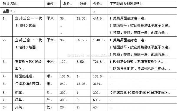 裝修費用明細表參考 以及如何識別家裝誤區