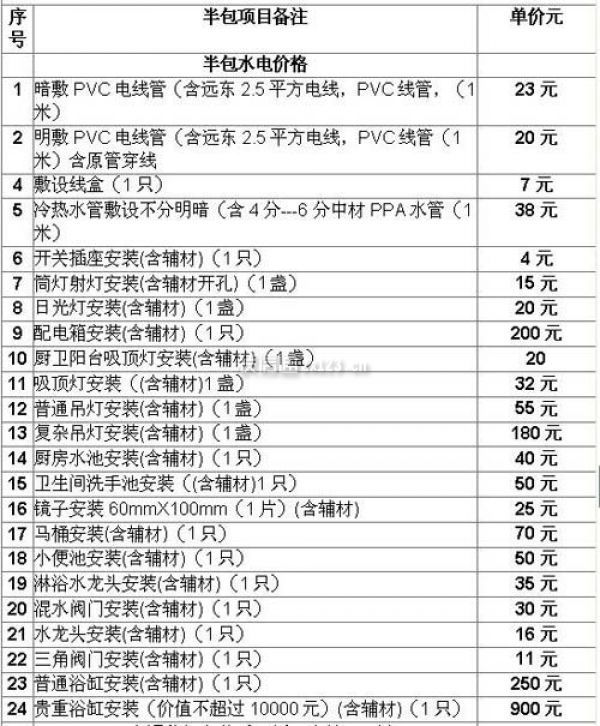 小編也是費(fèi)了九牛二虎之力才找到了這樣一份裝修半包價(jià)格表,下面小編就展現(xiàn)給各位業(yè)主朋友看看,供大家參考參考。