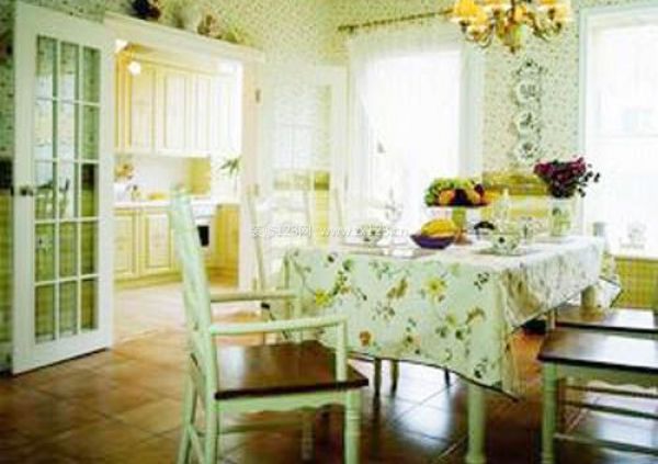 餐廳的碎花桌布,讓人感覺很休閑舒適。這樣的一套淺色餐桌椅顯得有些單調(diào)了,擺放一束艷麗的小花,是不是就顯得更加精神了。