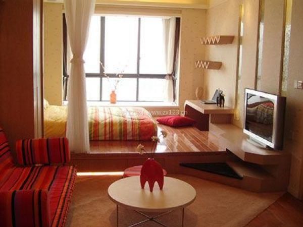 創意無處不在,家的世界里就需要創意,創意就是驚喜,驚喜就是浪漫,浪漫就會促進感情!這套小戶型裝修特別適合二人世界,盡管空間狹小,但是麻雀雖小,五臟俱全嘛!這里裝修的確實很有創意,臥室和客廳用窗簾分隔開,而且加高了一層,電視墻也是別出心裁,臥室的墻上有波浪造型,沙發和茶幾的完美搭配,整個室內的裝修和布置都讓人覺得創意無限!
