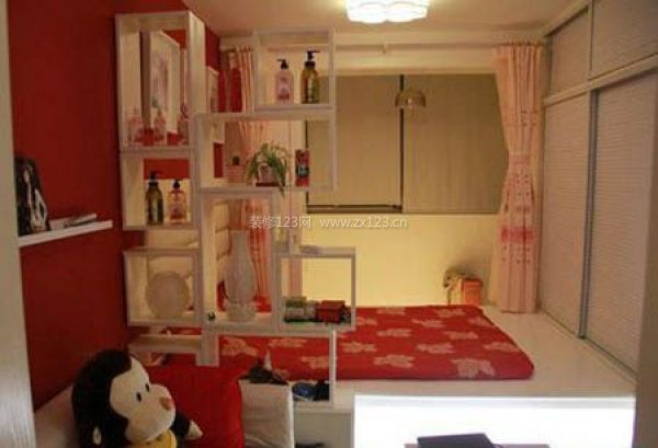 這種小戶型裝修能夠喚起我們兒時的記憶,裝修的完全就是童話世界。從遠端的窗戶開始,窗戶安裝的窗簾是粉色的,上面帶有花朵,往里走一點是一張紅色的小地床,上面也是有花朵的印記。當然,最顯眼的還是我們第一眼能夠看到的小猴子,小猴子是放在沙發上的裝飾物,它背面的這堵墻面上全部貼上了紅色的墻紙。住在這樣的小戶型里面,就如身處童話世界一般,喚起了我們兒時的記憶,進入了純真的天堂。