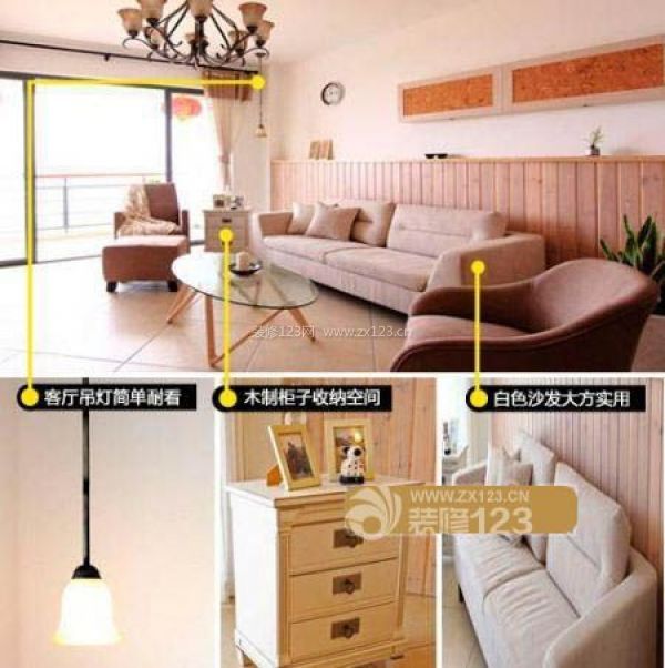 元素:吊燈+木制柜子+白色沙發(fā)