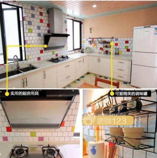 點(diǎn)評(píng):廚房的設(shè)計(jì)別致可愛(ài),墻磚五顏六色使廚房俏皮鮮活起來(lái),可愛(ài)的調(diào)味瓶安放在此處是一個(gè)很好的裝飾品,廚房用具款式不花俏卻很實(shí)用。
