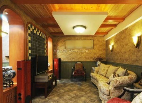 該客廳傳遞出美式風(fēng)格的氣息,采用暖色調(diào)碎花圖案布藝沙發(fā)裝扮客廳,為客廳增添了溫馨氛圍,沙發(fā)背景墻采用暖色圖案的壁紙裝扮在柔和燈光的照射下,使客廳不僅增添了柔美感,同時(shí)也散發(fā)出客廳的高貴氣質(zhì)。