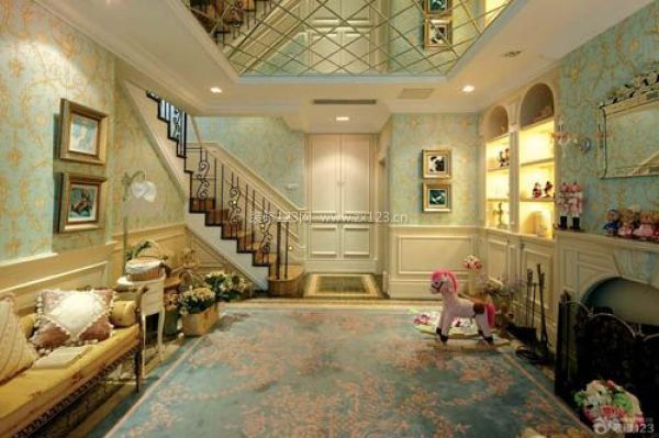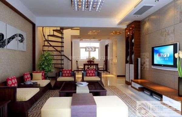 一般客廳部分都是中空設(shè)計(jì),使樓上樓下有效結(jié)為一體,有利于一樓的采光、通風(fēng)效果,更有利于家庭人員間的交流溝通,也使室內(nèi)有了一定的高差,這種立體空間,頓顯一份尊貴和大氣。正由于有了足夠的層高落差,設(shè)計(jì)時要注意彰顯這種豪華感。如在做吊頂時對燈具的款式的選擇面更大一些,可以選擇一些高檔的豪華燈具,以體現(xiàn)主人的生活和思想的品位。