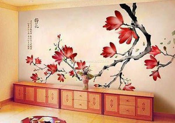 同樣是傲霜斗雪的梅,紅梅作為居室的裝點,帶來更多喜慶艷麗的感覺。尤其在辭舊迎新的冬季,用紅梅圖案的壁紙作為背景墻,讓居室充滿辭舊迎新的氣息。