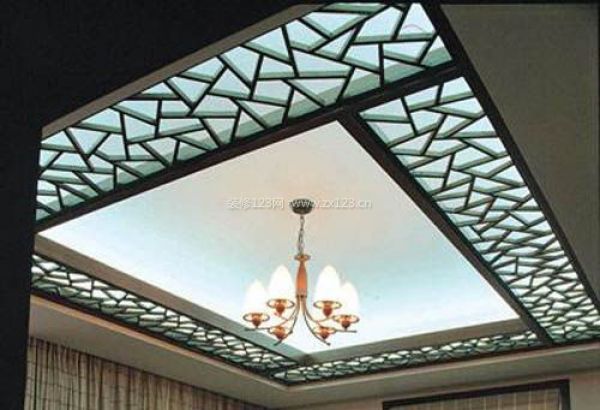 這款吊頂也屬于異性形吊頂,雖然它表面看是大平面為主,但仔細看,這個平面是由一組木制橫梁組成的。這種吊頂富有樸素大方并具有異域風情的特色,是小資一族所經常青睞的。該類吊頂一般用于客廳或餐廳等空間。