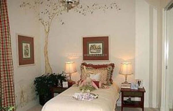 田園風格臥室背景墻,有了樹的點綴更讓人覺得置身于園林之家。