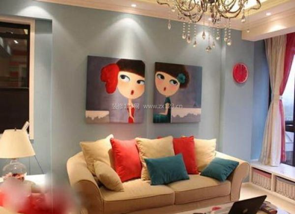 順道走過來看看客廳了。沙發,宜家味,好多的抱枕,原諒偶是抱枕控。哇咔咔。沙發后面的畫,家里就是這兩幅畫不算網購把。因為這兩幅畫是偶朋友親自畫給偶的哈,好看麼。哈哈。