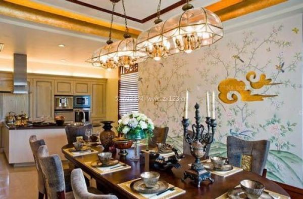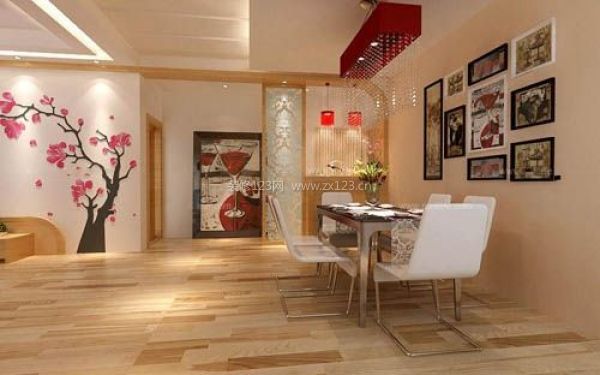 如果你是一個追求時尚的婦女和女孩,餐廳背景墻可以選擇粉紅色作為中心色,燈罩粉紅色,座墊和窗簾可用粉紅印花布,地板配上淡茶色,墻壁乳白色,這樣會給人一種靚麗青春之感。