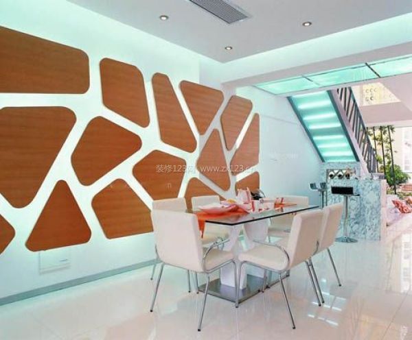 這種裝飾搭配十分適合新婚夫婦,很有情調(diào),十分浪漫。背景墻中心色選用柔和的粉紅色,燈罩、窗簾用紅加白色調(diào),餐廳局部用淡藍(lán)色點(diǎn)綴,效果十分明顯。如果有心,你就自己動手規(guī)劃設(shè)計(jì)一個餐廳背景墻吧。