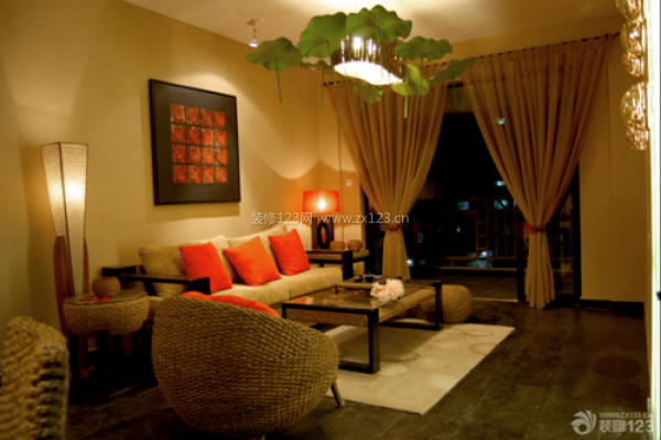 (4)如果房間較低,可用吸頂燈加落地?zé)簦@樣客廳顯得明快大方,具有時(shí)代感。燈具的造型與色彩要與客廳的家具擺設(shè)相協(xié)調(diào)。