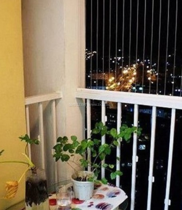空透的欄桿增加空間的開放性,兩盆綠色盆栽讓小空間看上去別樣清新。