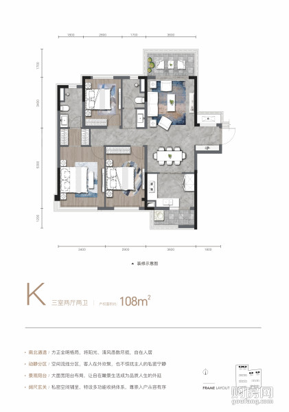 K戶型(3室2廳,108平,)