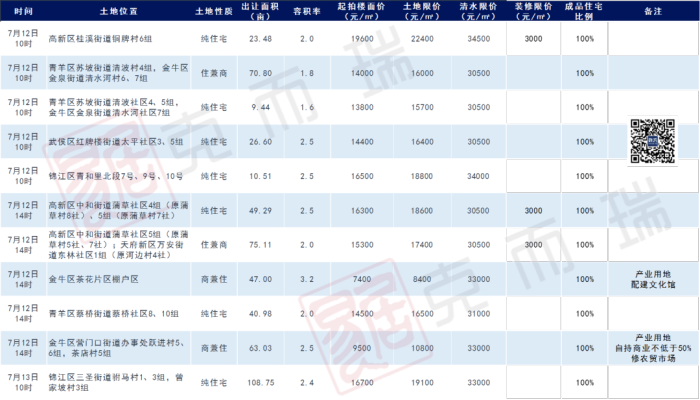 宗地位置:高新區(qū)中和街道蒲草社區(qū)5組(原蒲草村5社、7社);天府新區(qū)萬安街道東林社區(qū)1組(原河邊村4社),用地性質(zhì):住兼商用地,面積:50070.06平方米合75.1051畝,計容總建面:不小于50070.06平方米,且不大于100140.12平方米(其中兼容計容商業(yè)建筑面積比例不小于10%,且不大于21.7%),容積率:2,建筑密度:不大于25%成品住宅比例:100%,裝修限價:3000元/㎡,拍賣方式:“限房價、定品質(zhì)、競地價”+抽簽,動竣工時間:土地交付之日起12個月內(nèi)開工建設,自首次取得《施工許可證》之日起36個月內(nèi)竣工,起拍價:15300元/㎡,土地限價:17400元/㎡,清水限價:30500元/㎡