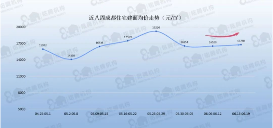 上周(2022.6.13-6.19)成都住宅新增供應(yīng)面積44.50萬方,環(huán)比下降48%,合計3678套;成交面積30.77萬方,環(huán)比下降4%,合計2434套。