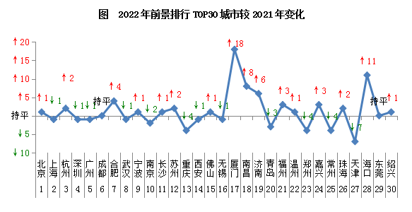 長(zhǎng)三角、珠三角城市圈經(jīng)濟(jì)實(shí)力雄厚,居民購(gòu)買力強(qiáng),在行業(yè)中目前仍然保持著領(lǐng)先的狀態(tài),發(fā)展前景排名前50的城市已經(jīng)連點(diǎn)成片。其中長(zhǎng)三角更是形成了“南京-上海-杭州-寧波-溫州”的“3”字型發(fā)達(dá)城市群走廊,不僅城市能級(jí)較高的一二線城市全處于排名前列,無錫、嘉興、常州、紹興、金華等城市,得益于發(fā)達(dá)的民營(yíng)經(jīng)濟(jì)支持,居民收入水平在全國(guó)范圍內(nèi)處于領(lǐng)先位置,吸引了大量外來人口的到來,典型如金華、無錫、嘉興、常州常住人口都達(dá)到了戶籍人口的1.3倍以上,外來人口購(gòu)房安居的剛性住房需求持續(xù)保持高位。再加之近年來房地產(chǎn)供給側(cè)調(diào)控改善了常州、溫州等城市的庫(kù)存壓力,使得長(zhǎng)三角,尤其是寧滬杭甬溫沿線城市的投資前景一直為房地產(chǎn)行業(yè)所關(guān)注。結(jié)合排名變化來看,不少城市排名較2021年進(jìn)一步提升,典型如合肥上升4名、臺(tái)州上升9位,蕪湖、鎮(zhèn)江均上升6位。