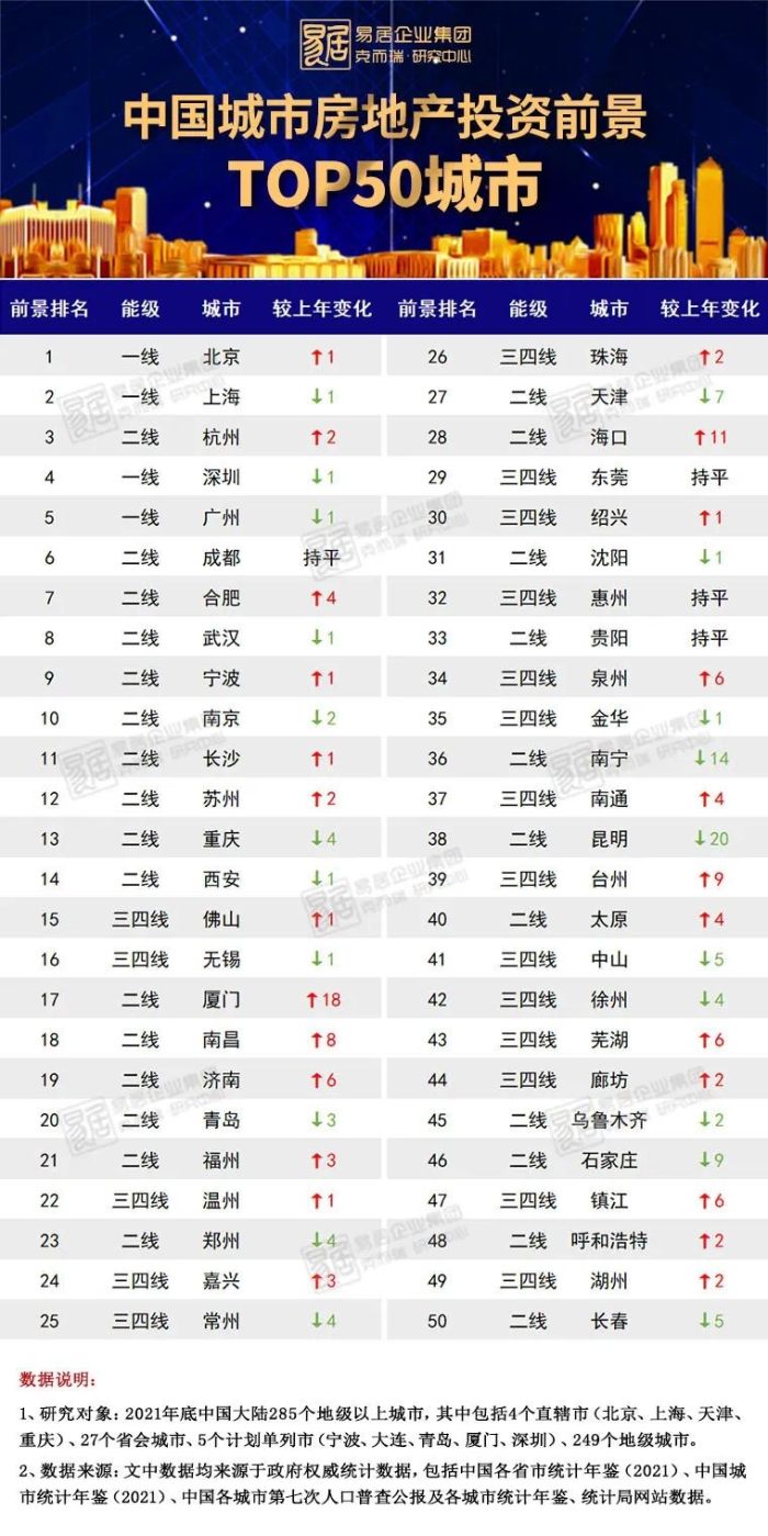 結(jié)合城市的投資前景變動(dòng)來看,TOP20城市中前景提升(含持平)的有兩類,一類是新房市場(chǎng)供求指標(biāo)優(yōu)異,但地房比比較高的熱點(diǎn)城市,如杭州、合肥、廈門等,2021年以來地價(jià)水平的修復(fù),再加之這類城市自身在人口和經(jīng)濟(jì)發(fā)展指標(biāo)上表現(xiàn)較佳,進(jìn)一步推高了這些城市的投資前景。另一類則是地價(jià)房?jī)r(jià)比相對(duì)較低,市場(chǎng)供求指標(biāo)相對(duì)健康的城市,如南昌、濟(jì)南、海口等,在行業(yè)投資趨于保守的背景下,這些城市的前景排名也出現(xiàn)了上升。