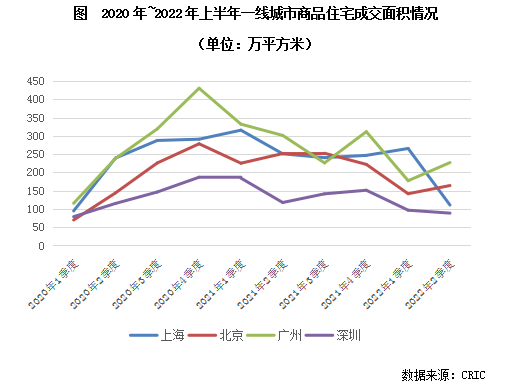 正是由于大量高收入群體的住房需求支持,一線城市的需求端支撐長(zhǎng)期表現(xiàn)強(qiáng)勁,尤其是在2020年上半年疫情發(fā)生以來,一線城市的樓市表現(xiàn)超出預(yù)期,韌性十足。具體來看,2020年下半年樓市成交迅速反彈,北上廣深四個(gè)城市的商品住宅成交量均明顯走高,并達(dá)到2017年以來的最高點(diǎn),其中上海、廣州和深圳的同比漲幅均在15%以上。進(jìn)入2021年下半年,在全國(guó)樓市成交普遍大幅下滑的情況,一線城市成交規(guī)模仍能保持相對(duì)高位。進(jìn)入到2022年,在行業(yè)成交規(guī)模持續(xù)收窄的背景下,在2022年2季度一線城市成交下探的趨勢(shì)率先趨穩(wěn)。除上海因?yàn)橐咔榉磸?fù)影響,導(dǎo)致2季度商品住宅成交進(jìn)一步環(huán)比下跌之外,深圳環(huán)比降幅明顯收窄,北京、廣州成交規(guī)模更是出現(xiàn)了觸底回升,其中廣州市商品住宅成交量更是較2020年同期增長(zhǎng)了14%。