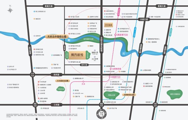 合能楓丹新悅位于新都區(qū)大江中學(在建)旁。毗河岸延線生態(tài)長廊的合能楓丹新悅,不僅有一河生態(tài)帶,還有成都諾貝爾公園、源上灣公園、濱河公園等三座公園,生態(tài)環(huán)境十分優(yōu)越。